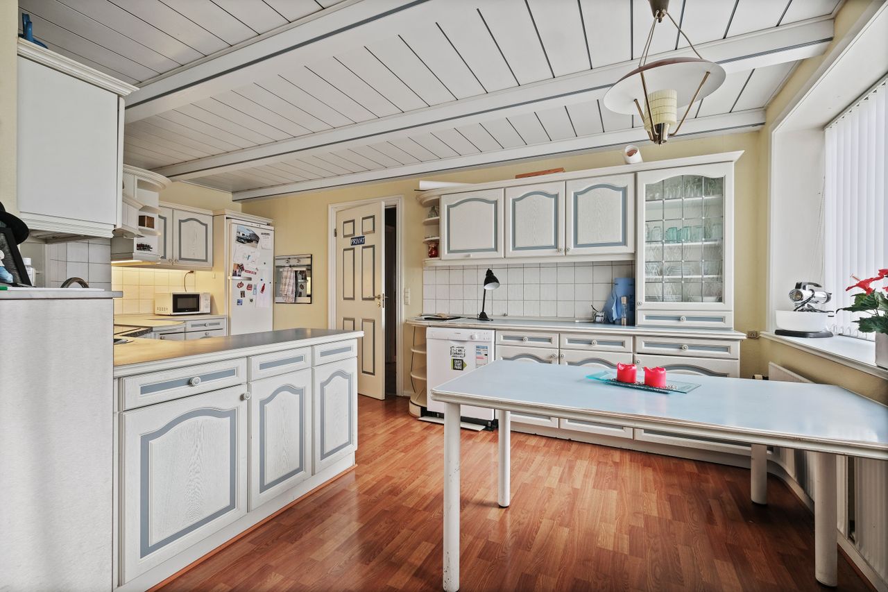 Huset er indrettet med fordelingsgang, Åbent køkken-stuemiljø, i stuen er der pilleovn, badeværelse med gulvvarme, soveværelse med walkinn-closet samt 2 børneværelser og et gæstetoilet. Flere store opholdsrum med mange muligheder - skal ses og opleves.