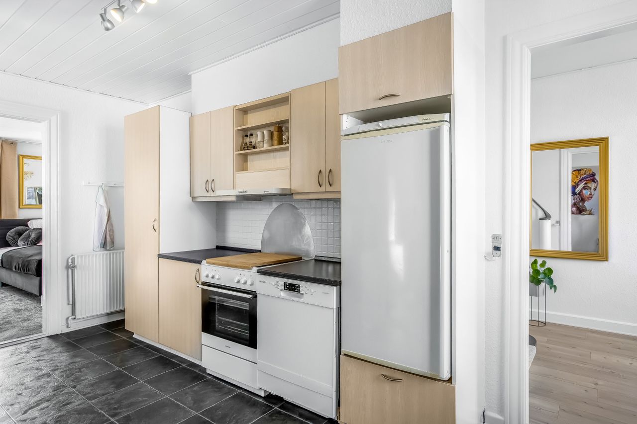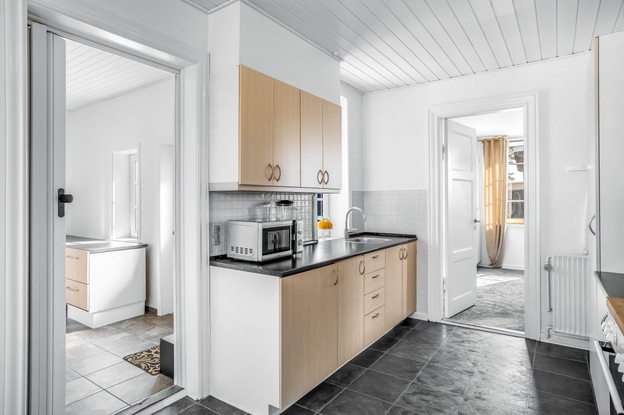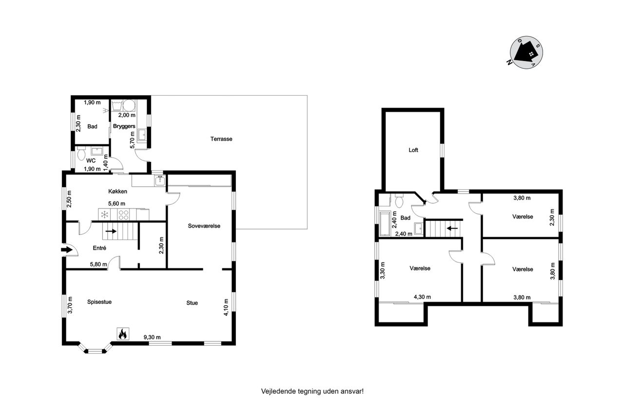 Huset er indrettet med en hall med trappeopgang til tagetagen, bryggers, gæstetoilet med gulvvarme, baderum med bruseniche, pænt køkken med opvaskemaskine og spisekrog, stor hyggelig indrettet stue med pilleovn samt et flot gulv, stort soveværelse med skabe, via hall adgang til den udnyttede tagetage, hvor der forefindes 3 børneværelser samt et badeværelse med karbad og bruser.
