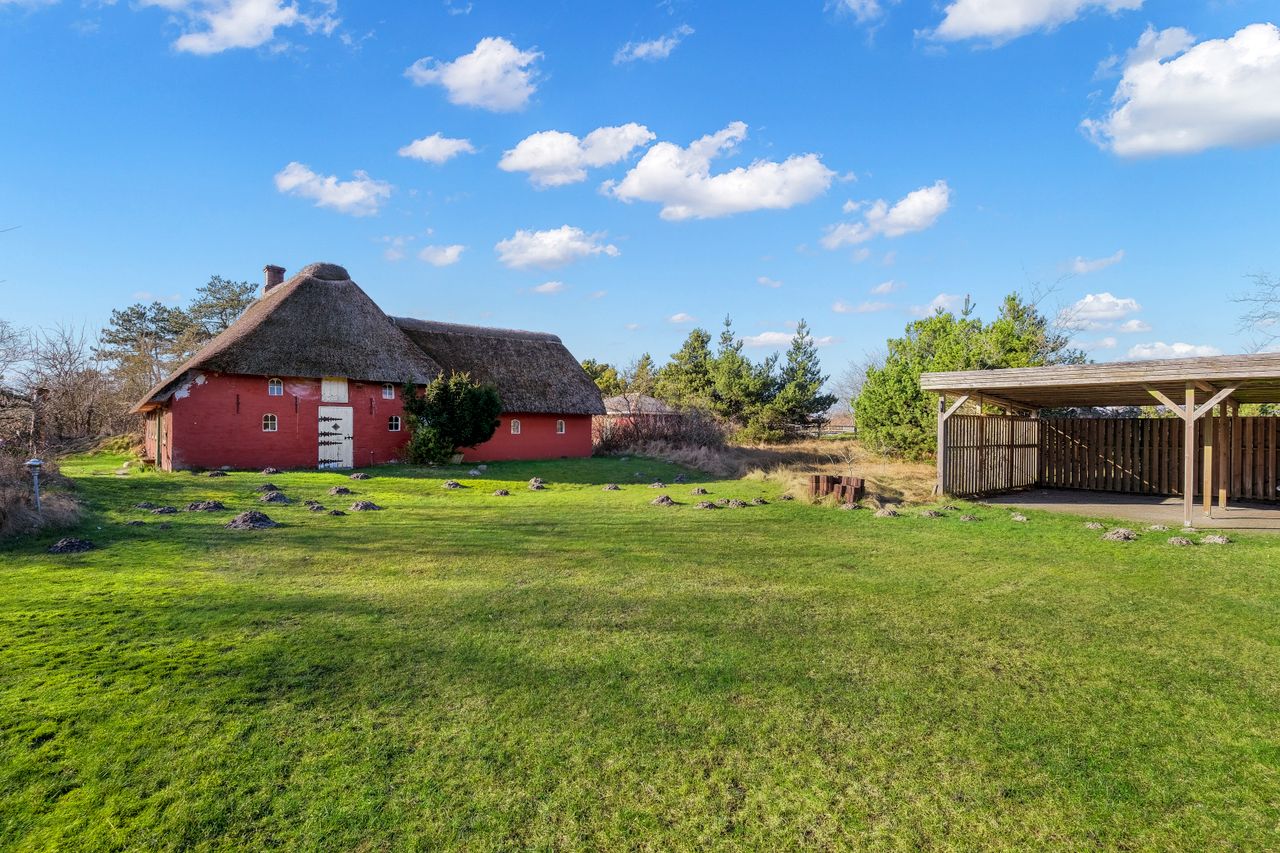 Rømøhus med stråtag sælges beliggende på en flot stor naturgrund på hele 4.435 m2. Huset har et boligareal på 116 m2, er opført i 1773, opvarmes ved elvarme, varmepumpe og brændeovn. Huset trænger til gennemgribende renovering indendørs. Stort udhus på 18 m2 samt carport på 46 m2. Bygningen/huset har bevaringsværdi 4.