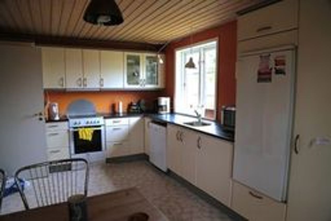 Husets indretning: Vindfang, fordelingsgang, køkken med opvaskemaskine, badeværelse med karbad, stue med udgang til terrasse.