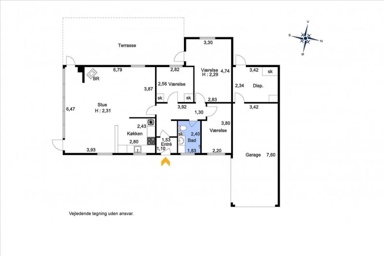 Husets indretning: Vindfang, fordelingsgang, bryggers med vaskemaskine og tørretumbler, nydeligt åbent køkken med spiseplads og opvaskemaskine, flot stor stue med brændeovn, varmepumpe og udgang til sydvendt terrasse, badeværelse med gulvvarme, 1 soveværelse med dobbeltseng, 2 soveværelser med hver 2 fritstående senge.