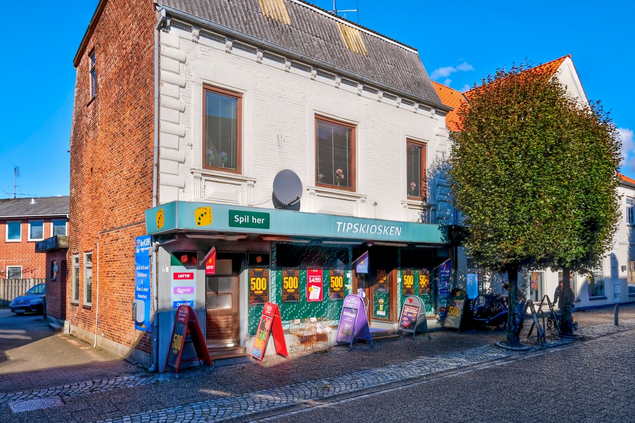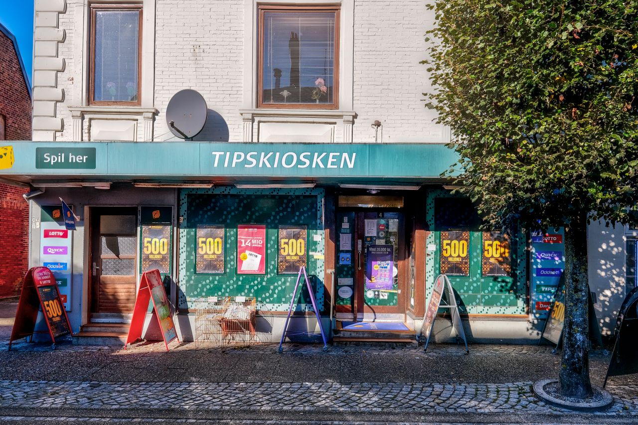 I centrum af byen sælges bygningen, som indeholdt Tipskiosken, beliggende på Storegade 4, 6780 Skærbæk. Butikken, hvor erhvervsarealet udgør 120 m2, kan laves om til et lejemål, så der kan blive 2 lejemål i huset. Opvarmning af erhvervsarealet sker ved fjernvarme. Ejendommen er opført i 1905/1974 i 2 plan. Boligarealet på 1. sal udgør 128 m2. kælder 9 m2. Energimærket f. Grundarealet er på 238 m2.