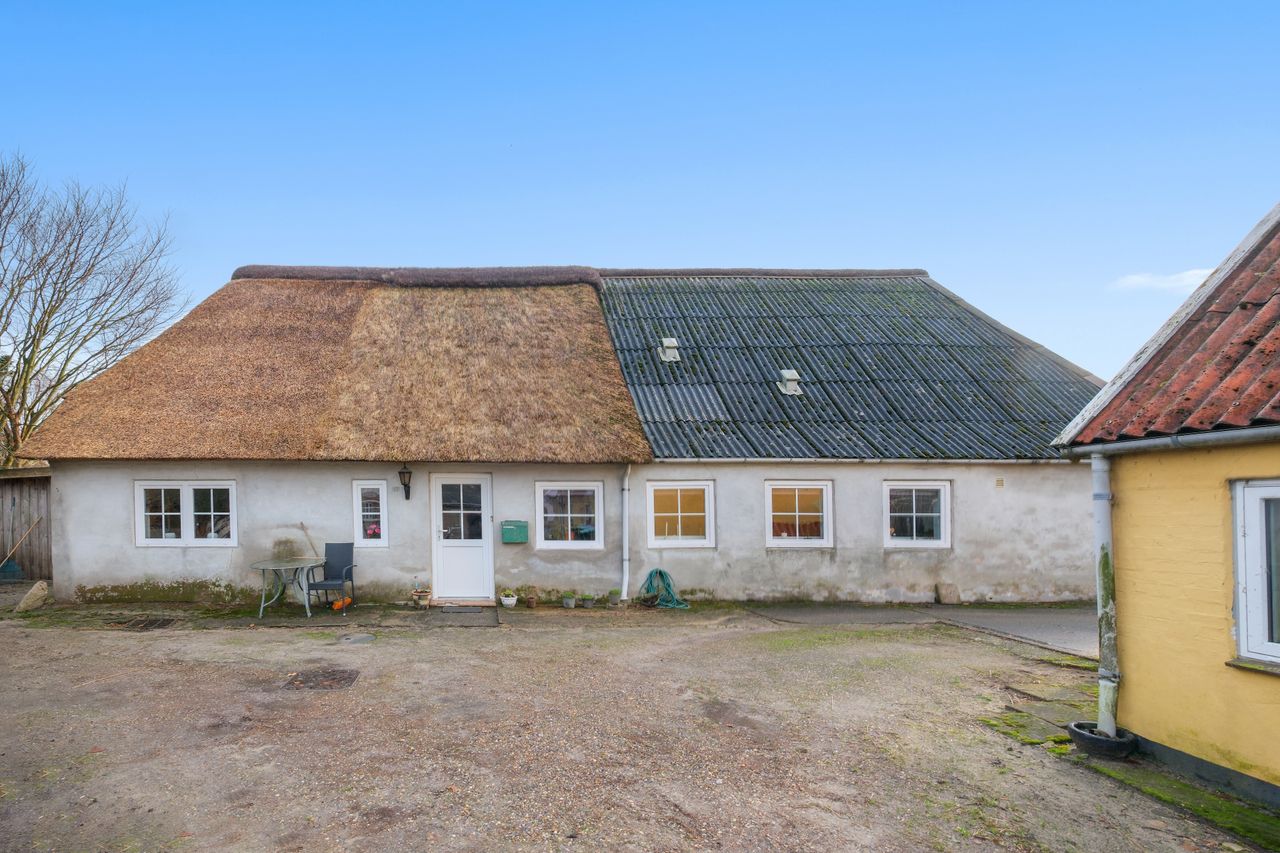 Tæt ved centrum i Skærbæk, i gå-afstand til indkøbsmuligheder, skole og børnehave sælges hyggeligt dobbelthus. Huset er opført i mursten samt et plan i 1862 , har stråtag, og er energimærket E, huset opvarmes ved fjernvarme, og er pt. udlejet, forhør nærmere ved ejendomsmægleren. Huset har et samlet boligareal på 126 m2, og et samlet grundareal på 975 m2.