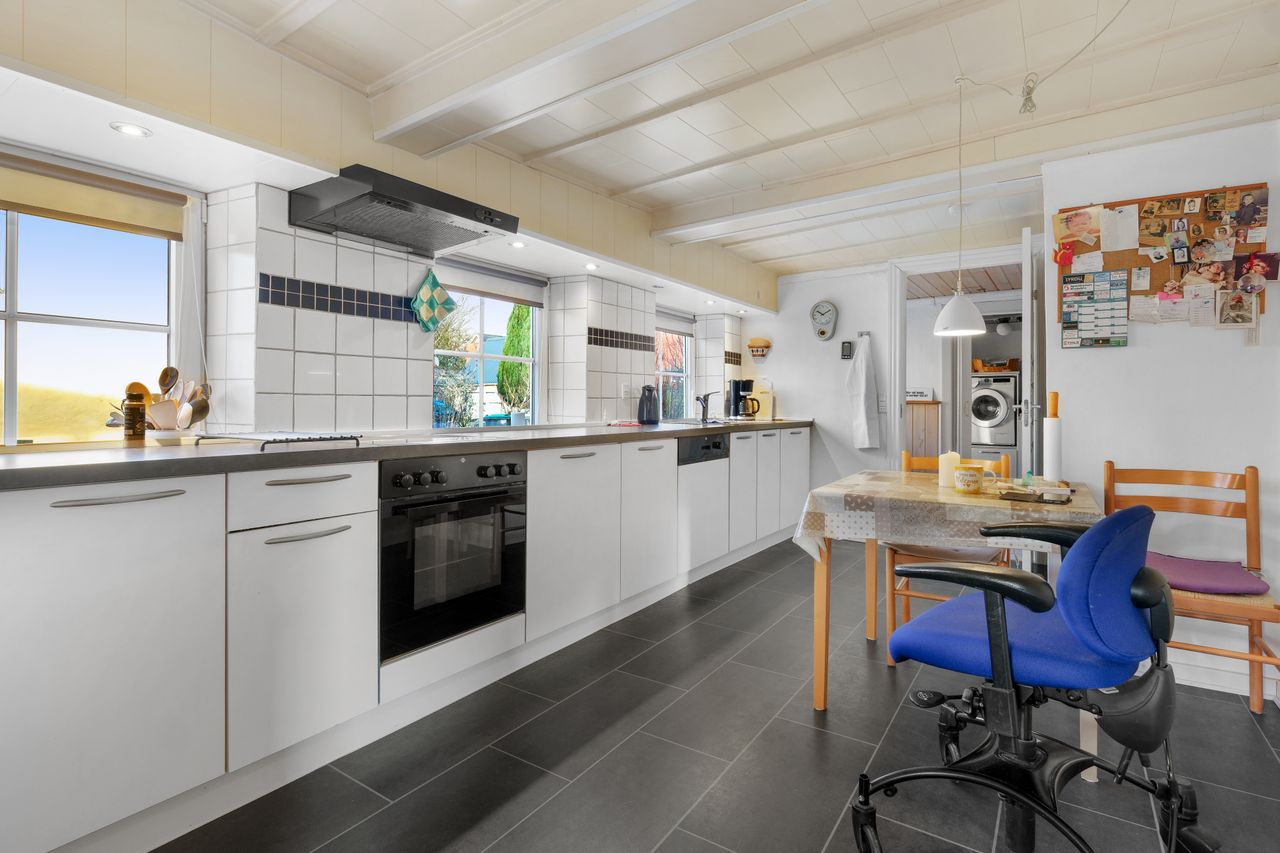 Huset er indrettet med et bryggers, et køkken, stor stue, badeværelse og 2 soveværelser. Derudover forefindes yderligere et badeværelse, soverum/stue og køkken.