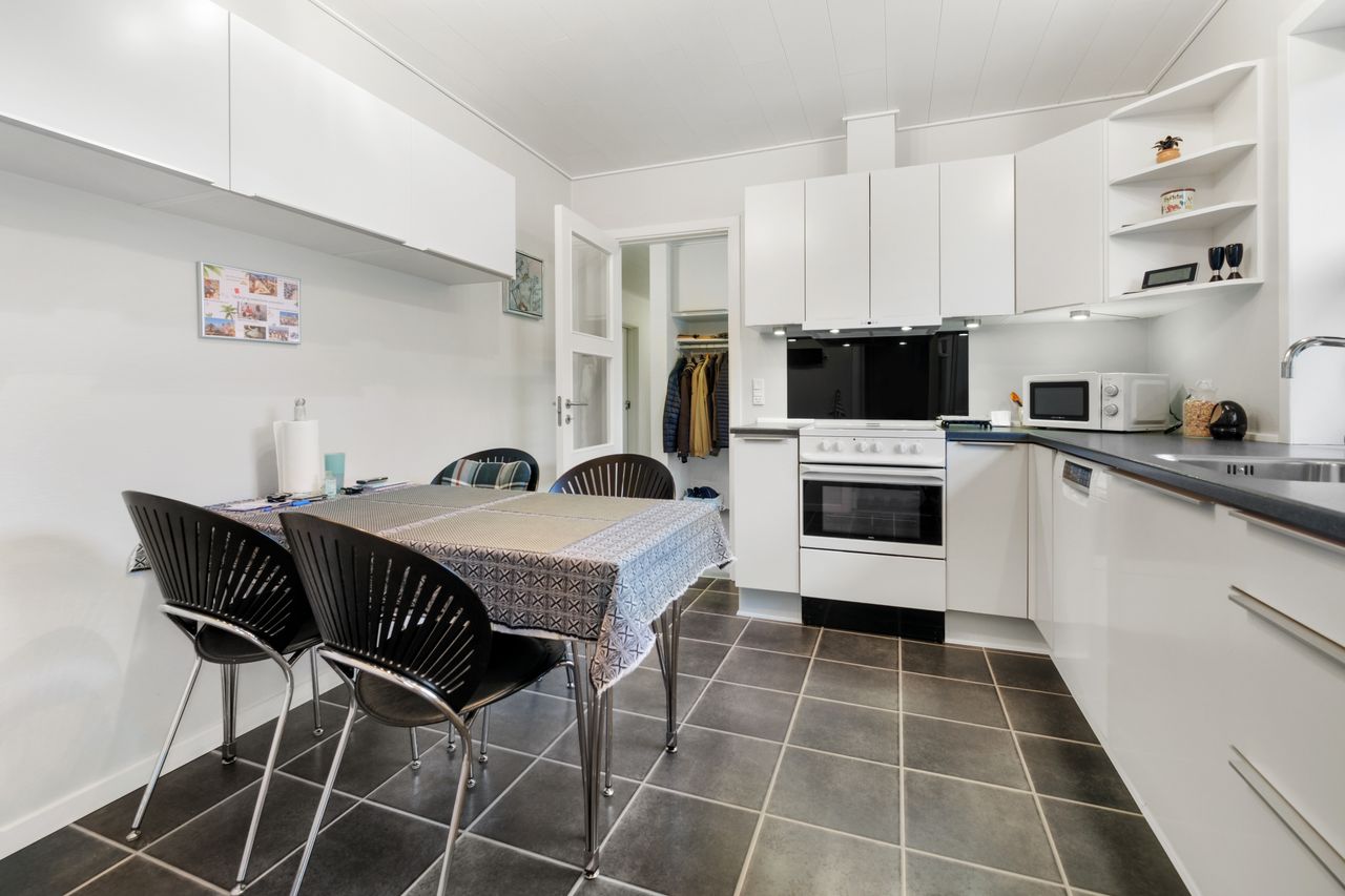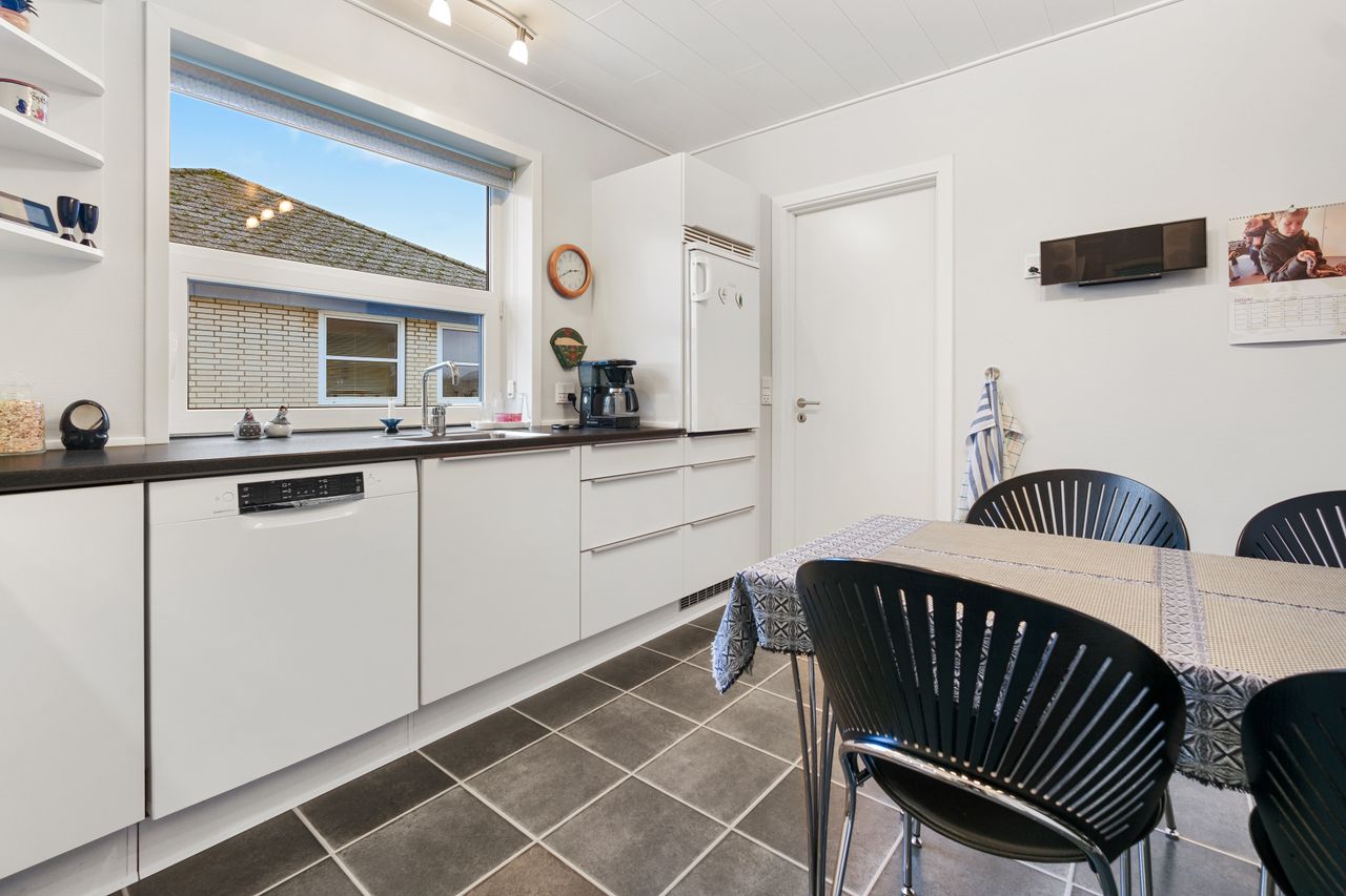 Huset er indrettet med et stort bryggers samt et viktualierum/spisekammer, hyggeligt køkken med spiseplads, opvaskemaskine og gulvvarme, pragtfuld stor stue med udgang til lækker terrasse, Flot badeværelse med gulvvarme, stor fordelingsgang, soveværelse med indbyggede skabe og udgang til terrasse, 3 børneværelser med skabe samt et gæstetoilet med gulvvarme.