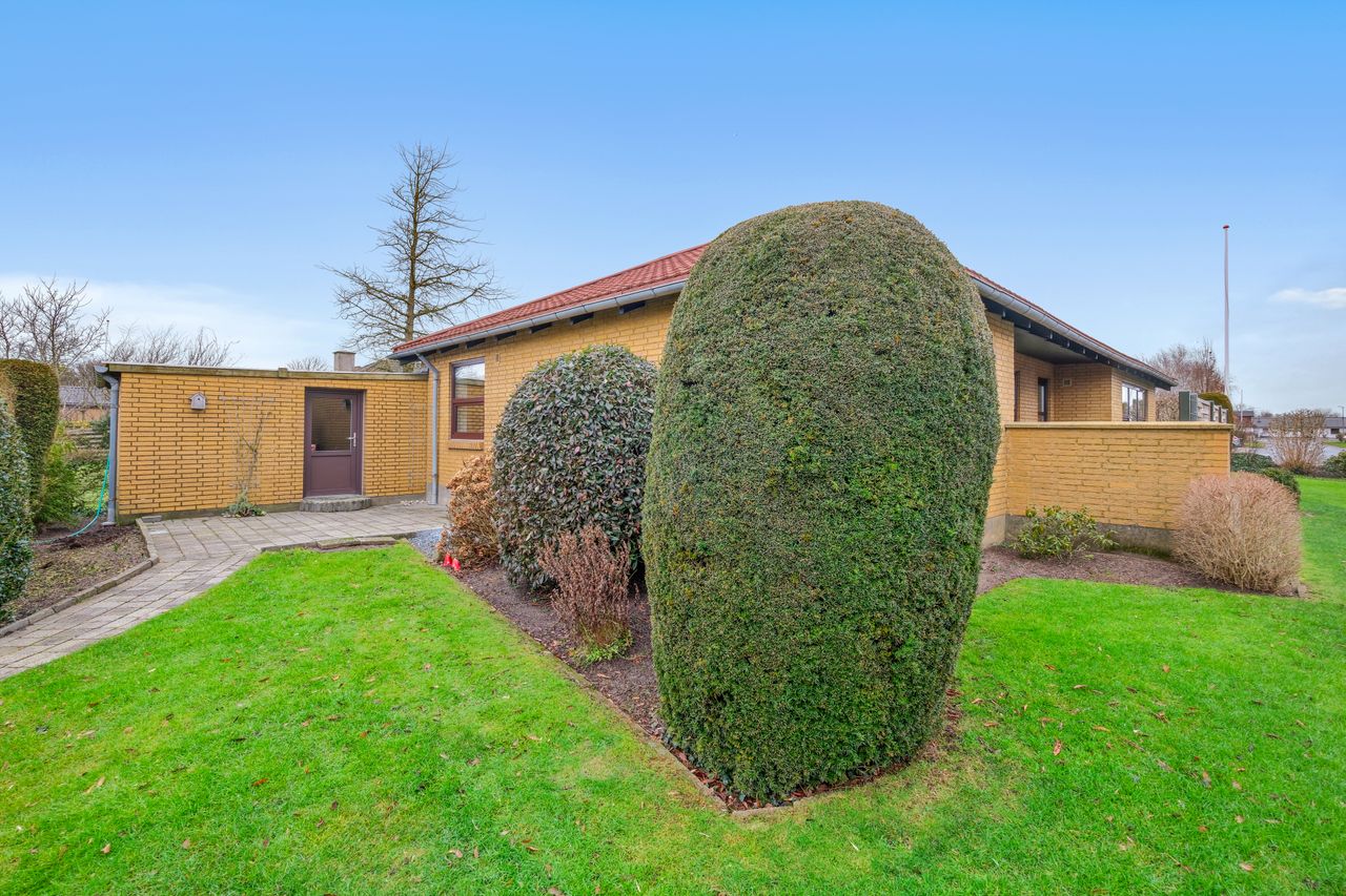 I den sydlige del af Skærbæk sælges flot et-plans-murstens-villa. Huset er opført i 1969 med 4 soverum, særdeles flot og velholdt have med et grundareal på 768 m2, nydeligt udhus samt en stor flisebelagt garage på 32 m2. Opvarmes ved fjervarme, har ståltag samt mahognifarvede plastvinduer og døre. Huset er Energimærket D.