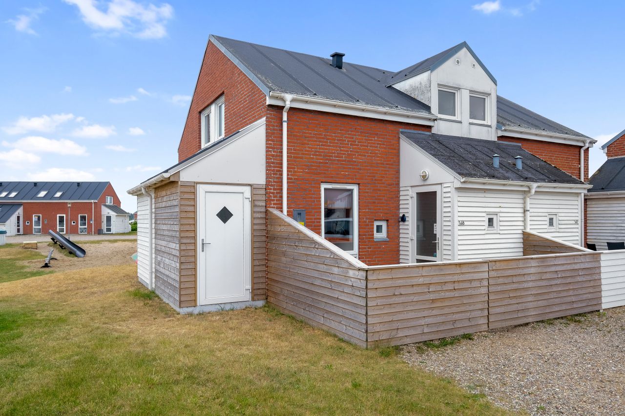 Flot lejlighed på Rim Feriecenter - lejlighed nr. 148, med ugeneret terrasse ud imod Rømø Golfbane. Lejligheden er opført i 1987 i røde mursten. Har udnyttet tagetage. Til lejligheden hører der gratis adgang til Fællescentret med Cafe, 2 indendørs og 1 udendørs swimmingpool og sauna m.m. Bruges privat samt til udlejning. Udlejes gennem Dancenter - dette har indbragt husejeren kr. 60.100 i 2024 og foreløbig for 2025: ca. 74.000 kr. jf. husejer. Opvarmning sker ved Fjernvarme!