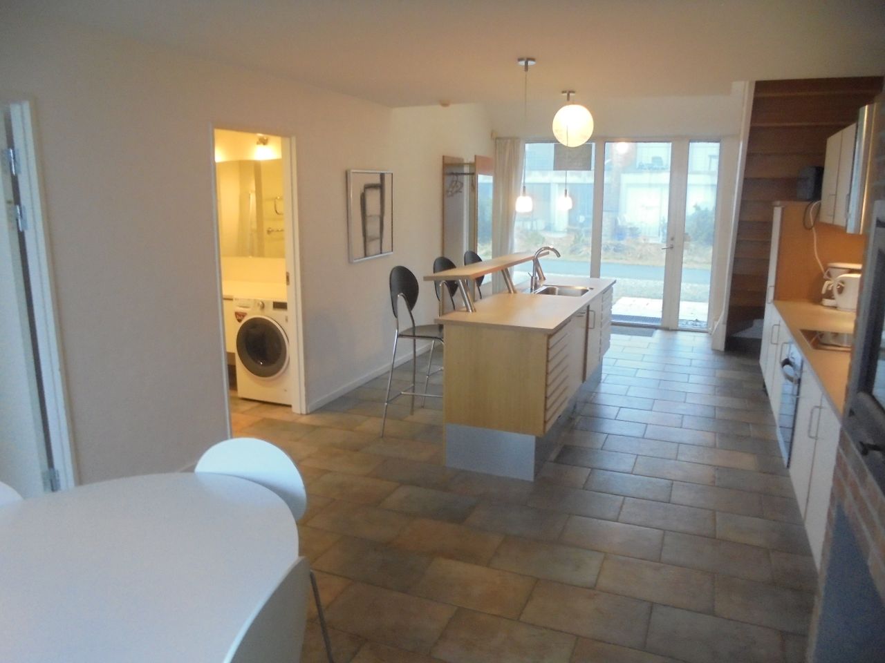 Indrettet med åbent køkken med spiseafdeling, udgang til terrasse, 2 store soveværelser med dobbeltsenge, nydeligt badeværelse med bruseniche. Fra køkken er der adgang til 1.sal via trappe, hvor der er stor opholdsstue og udgang til terrasse/altan.