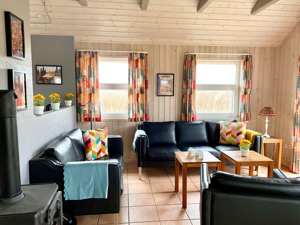 Huset er indrettet med fordelingsgang, flot åbent køkken med gulvvarme og spiseplads til 8 pers., pragtfuld stue med gulvvarme, brændeovn samt varmepumpe - udgang til den overdækkede østvendte terrasse. Loft til kip som giver et fantastisk indeklima. Badeværelse med sauna, vaskemaskine, tørretumbler og gulvvarme, 3 soveværelser med dobbeltsenge og skabe samt stor og høj hems med 2 sovepladser.
