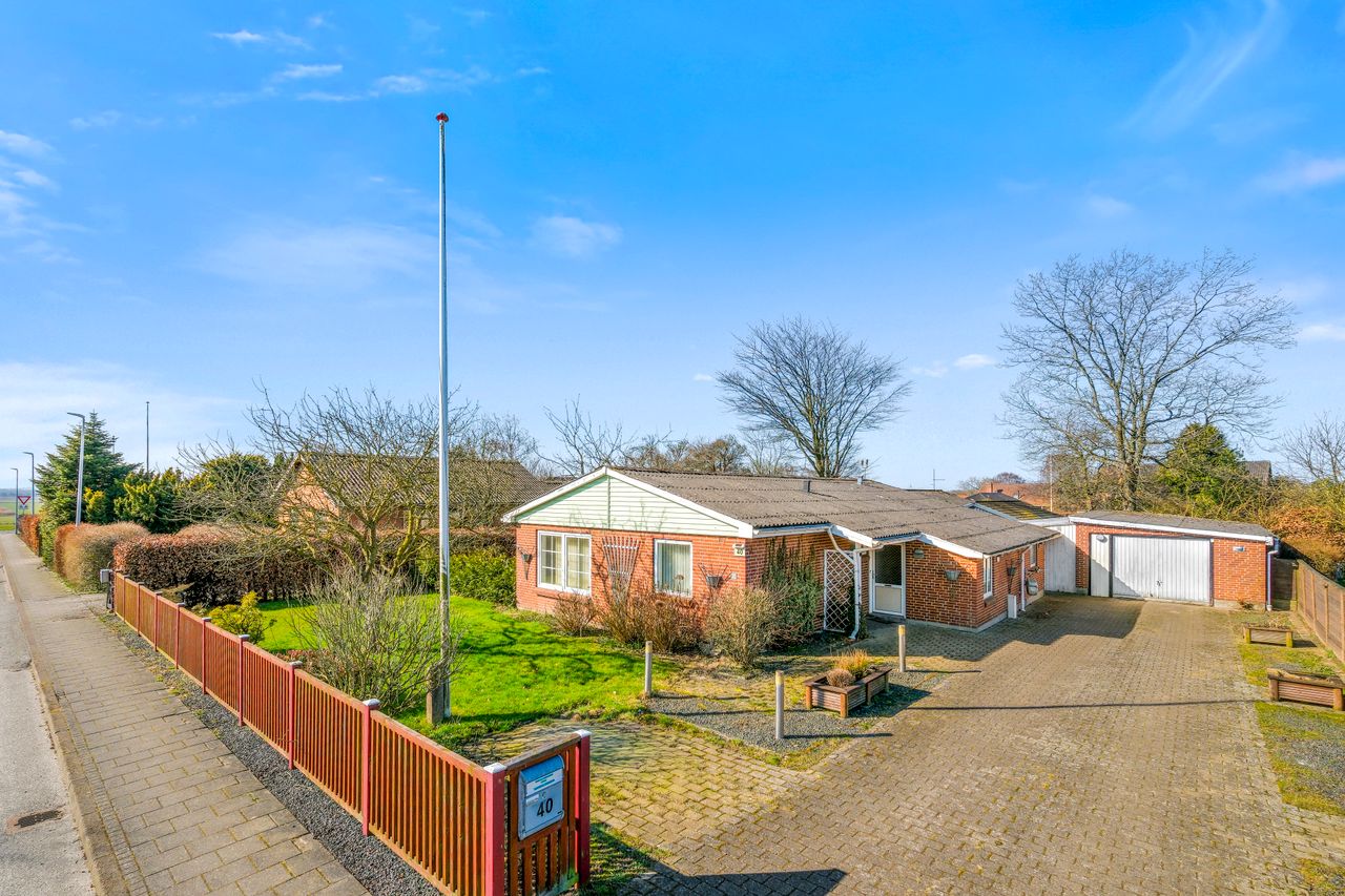 På Nygade 40 i Skærbæk - sælges fritliggende parcelhus, opført i 1958/1971 i røde mursten. Separat kloakeret spildevand, off.kloak. Huset er opført i 1-plan med et boligareal på 112 m2 samt en garage på 32 m2, antal soverum 2. Energimærket D, plastvinduer i huset. Dejlig lukket have samt stor overdækket terrasse. Skal opleves!